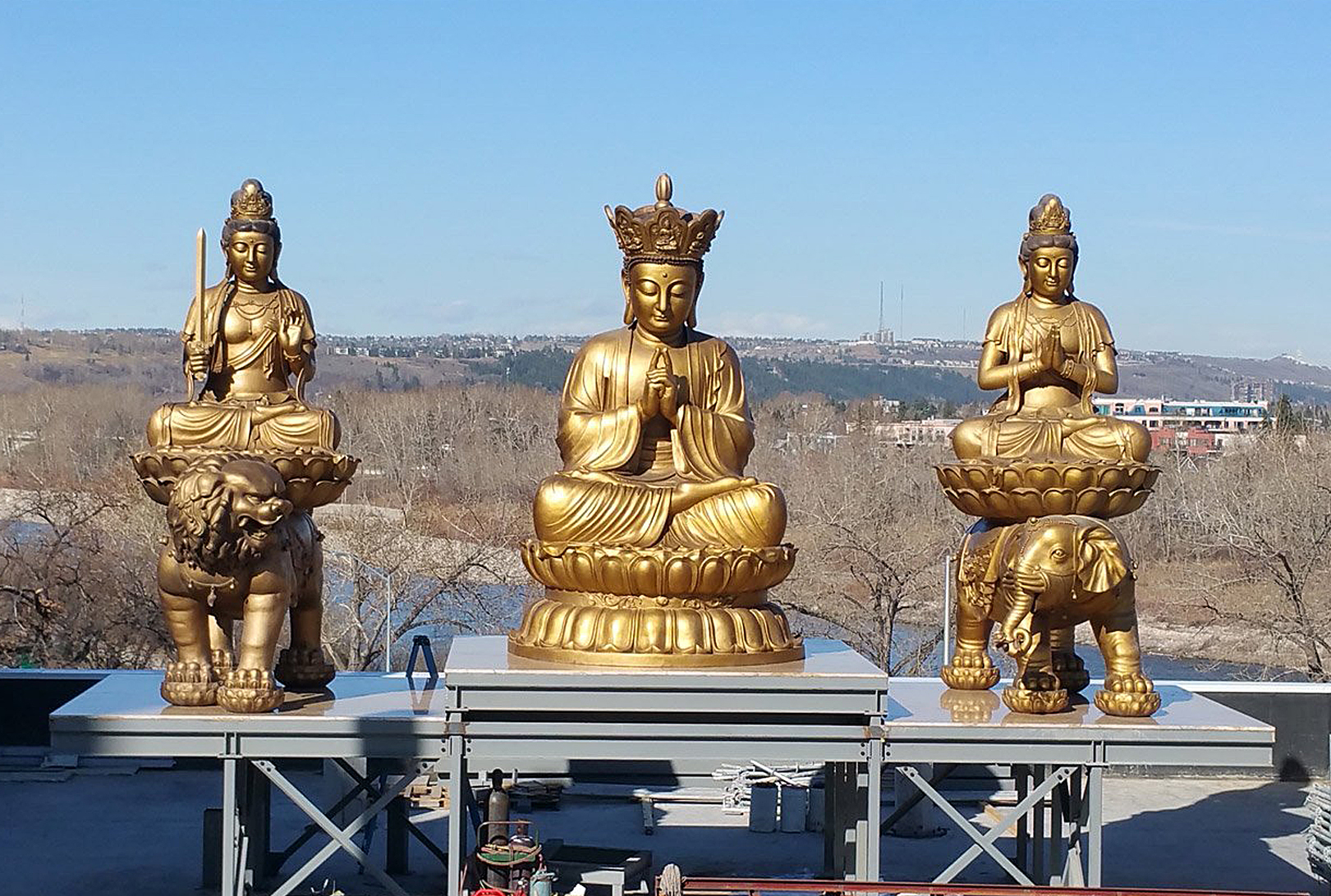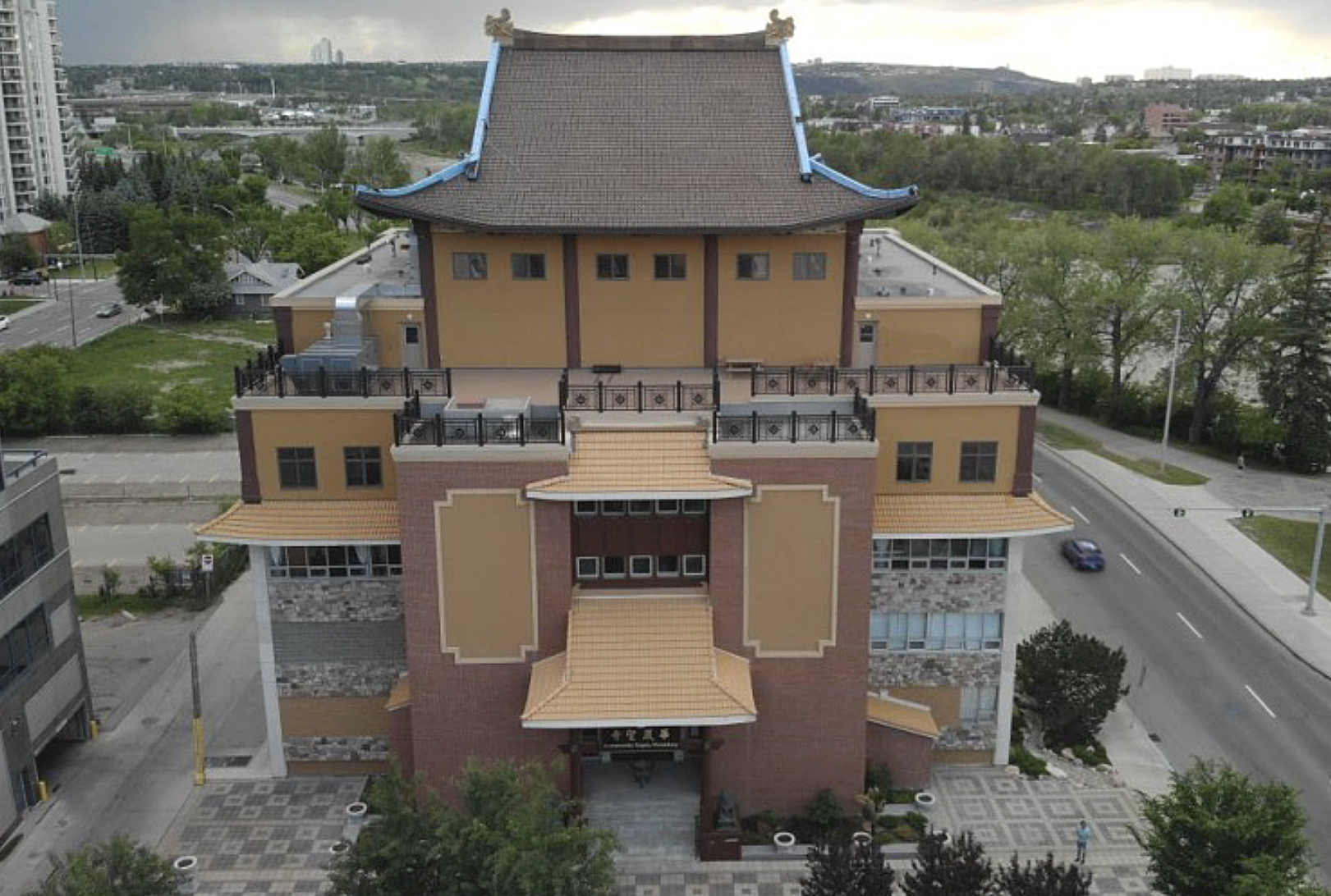 The Avatamsaka Monastery in Calgary has undergone significant renovations to enhance its facilities. The building, located adjacent to the Bow River, encompasses approximately 21,000 square feet of floor space and is constructed with reinforced concrete, allowing for the addition of multiple stories. The current layout includes: